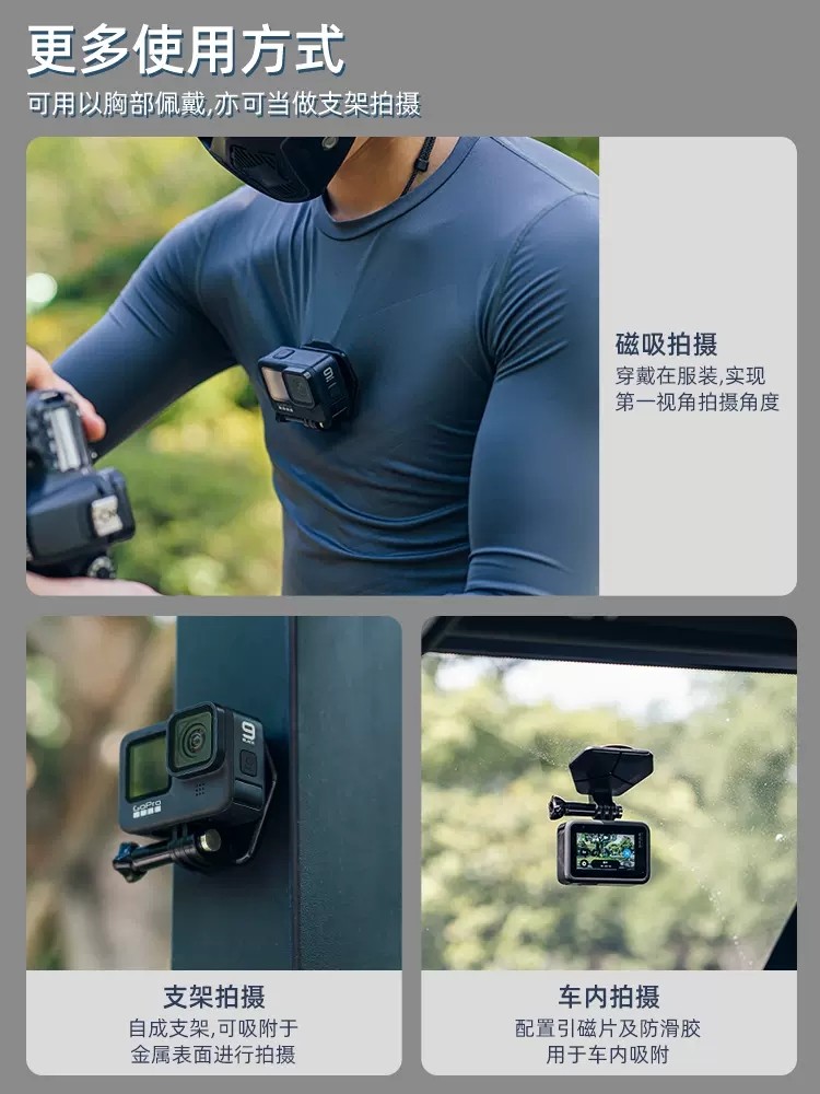 GoPro13/12/11/10/9/8/7/6磁吸快拆支架第一视角运动相机磁性配件