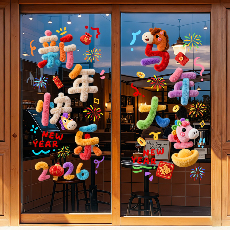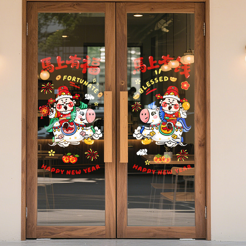 2026新年窗花马年装饰新款玻璃门贴纸静电橱窗贴春节氛围布置贴画