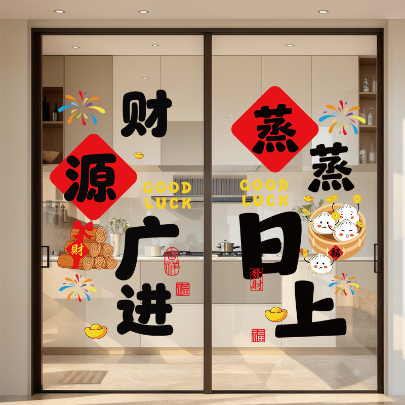 2026新款厨房防油贴纸耐高温灶台油烟机蒸蒸日上乔迁之喜新年装饰