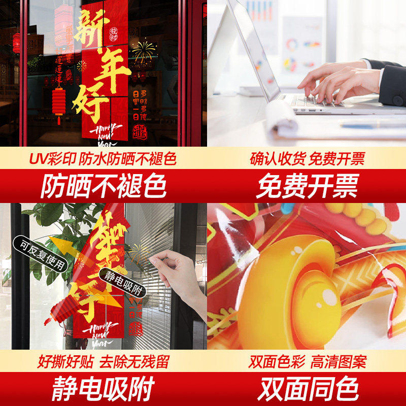马年2026新款春节玻璃门贴静电贴画新年过年客厅厨房布置橱窗贴纸