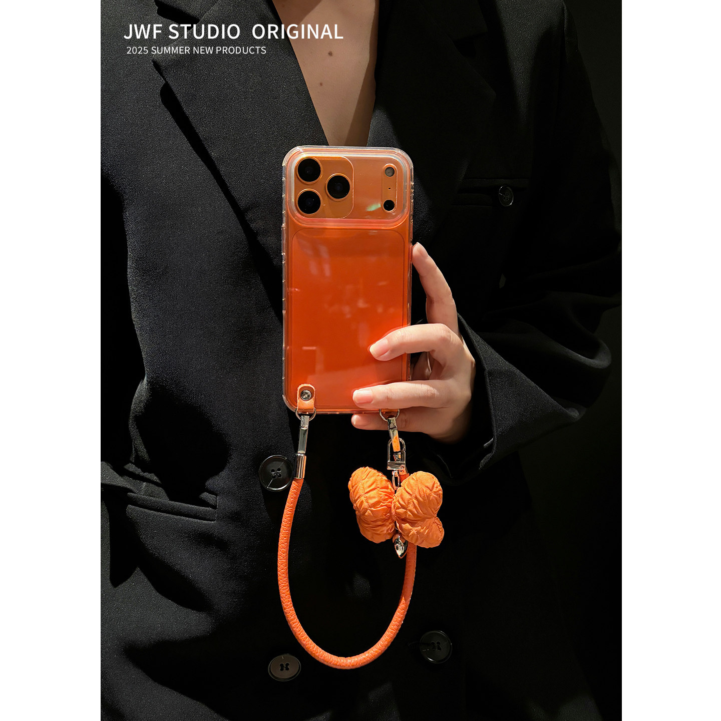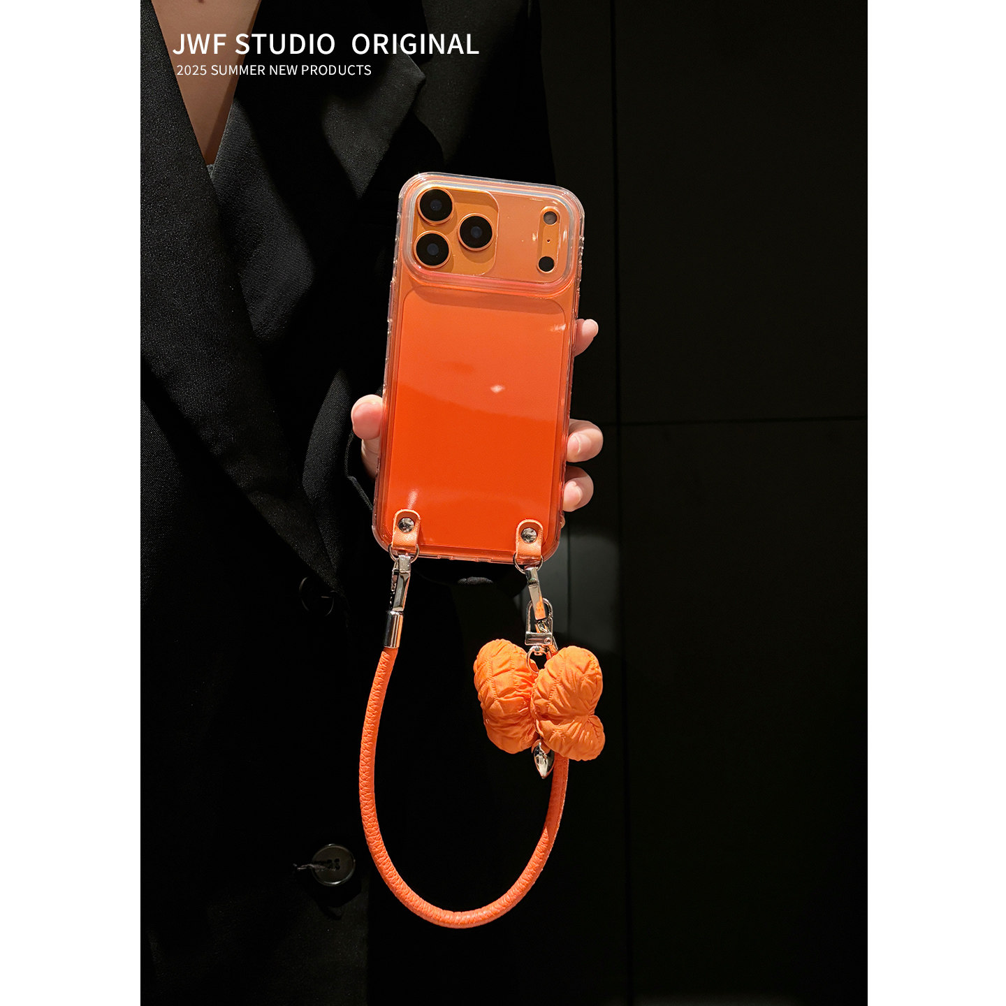 苹果17promax手机壳斜跨橙高级感