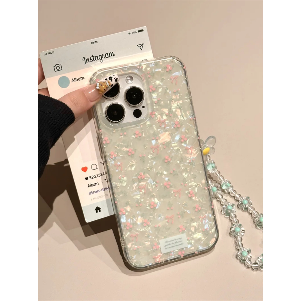 ins粉色碎花蝴蝶结贝壳纹适用iphone16pro手机壳苹果17新款15创意14pro女款13超火15promax全包防摔保护套