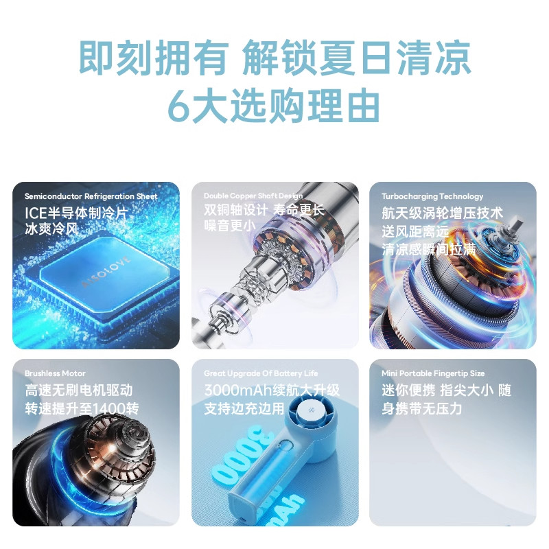 素乐手持小风扇小型办公室桌面静音迷你小涡轮夏天降温神器便携式户外随身空调制冷风扇超长续航半导体电风扇