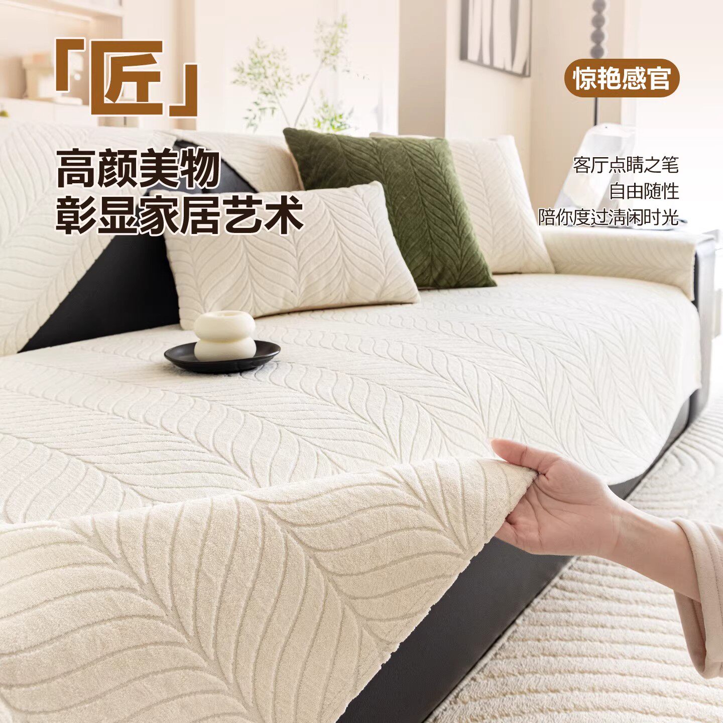 奶油风2026新款沙发垫冬季毛绒高级感皮沙发座垫固定防滑沙发盖布