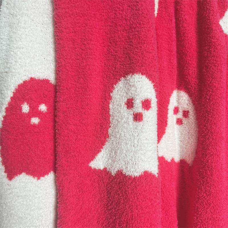 厂家万圣节幽灵毯子A类半边绒针织线毯沙发毯