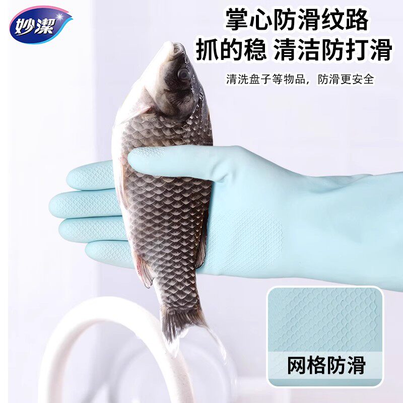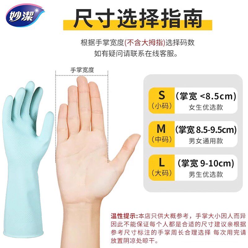 妙洁洗碗手套天然乳胶家务厨房耐用乳胶防水橡胶皮刷碗做饭清洁