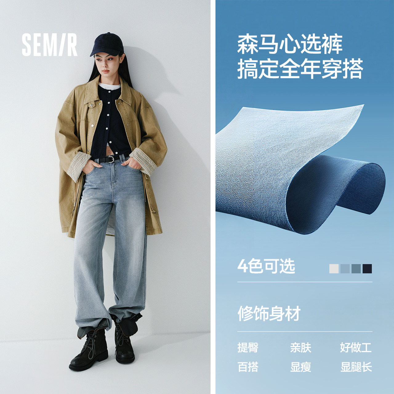 森柔牛仔|商场同款森马牛仔裤女翻边长裤2025秋季新款宽松阔腿裤