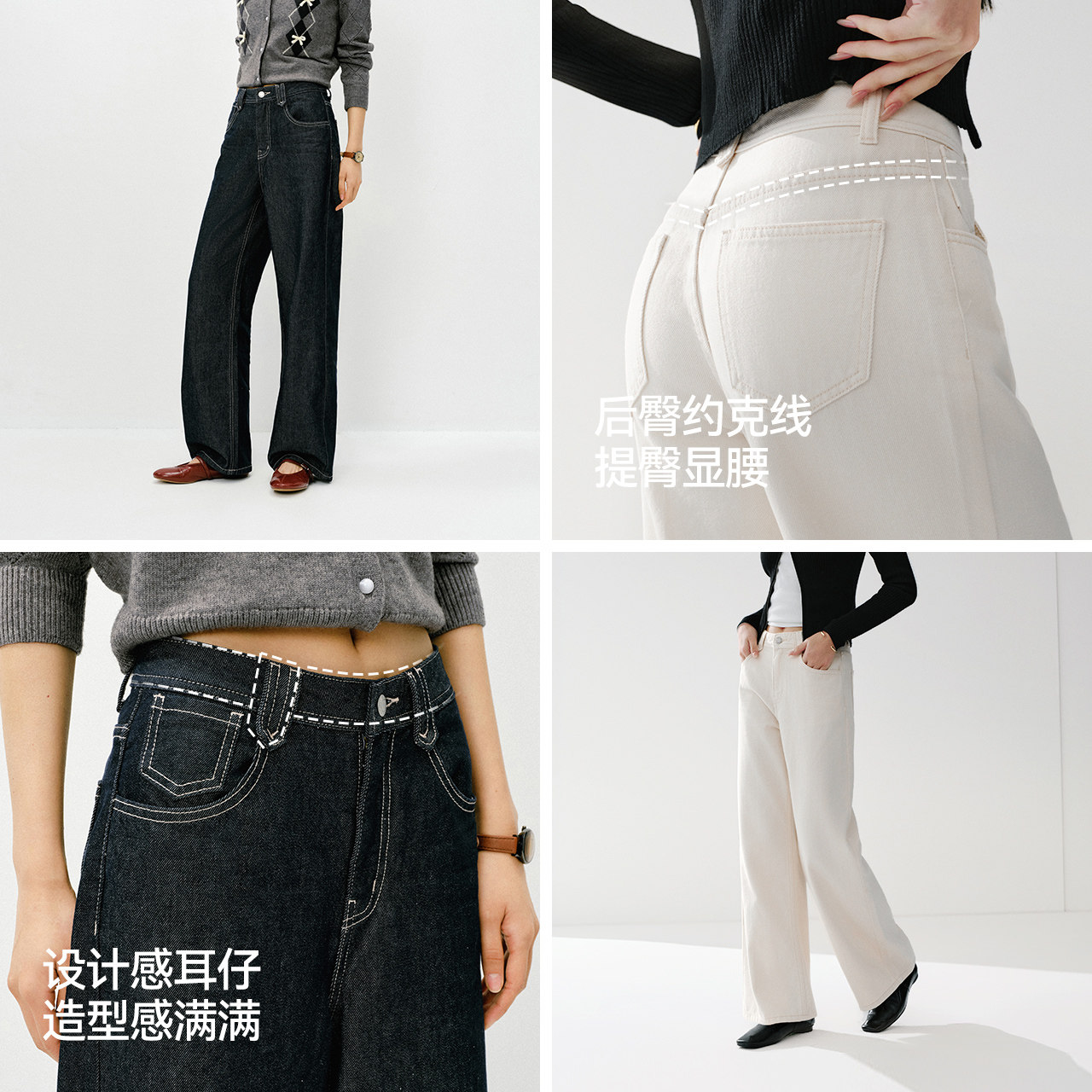 森柔牛仔|森马阔腿牛仔裤女2025秋冬白色牛仔裤简约女士高腰裤子