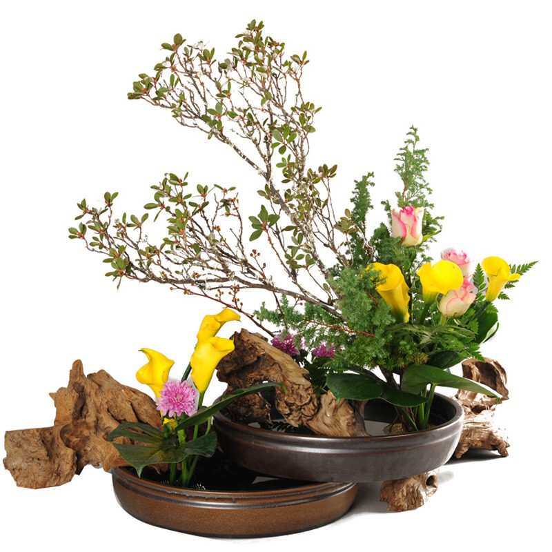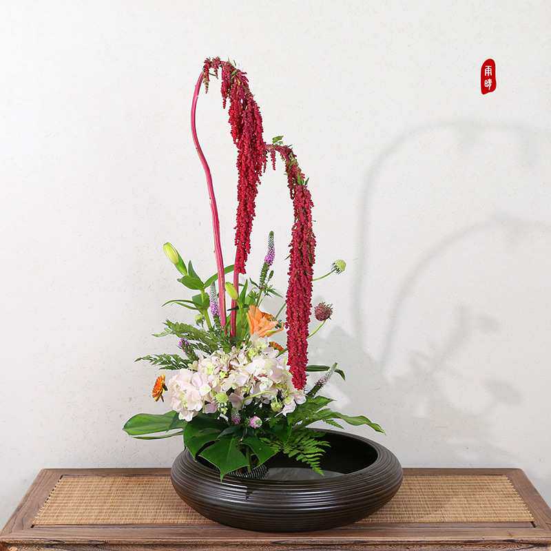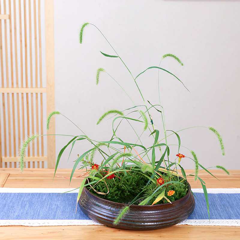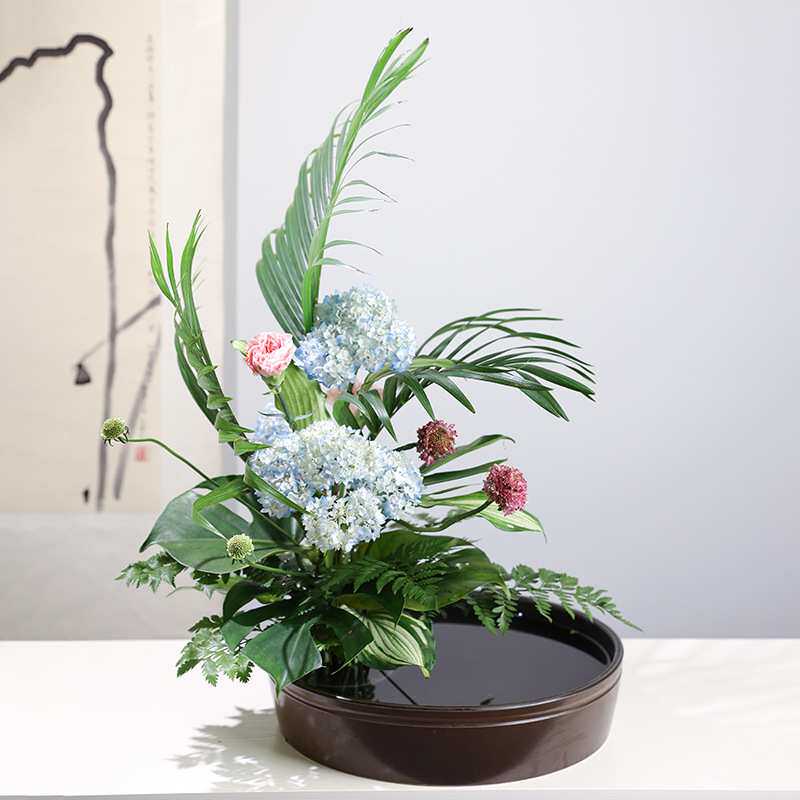花盆陶瓷中式室内插花花器中华花艺盘花花器剑山插花工具简约艺术
