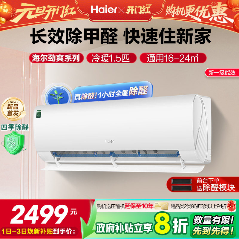 【除醛新品】海尔空调劲爽家用官方1.5匹新一级变频冷暖挂机35LGA