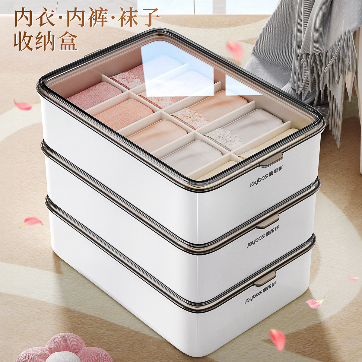 佳帮手内衣内裤袜子三合一收纳盒家用衣柜贴身衣物专用分隔整理盒