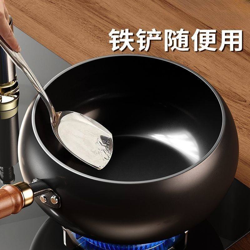 韩国麦饭石不粘锅炒锅家用原装进口电磁炉燃气灶专用不沾锅炒菜锅