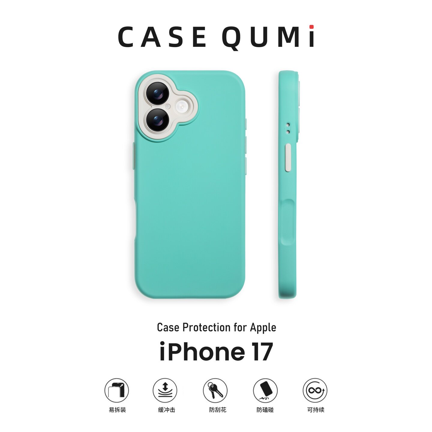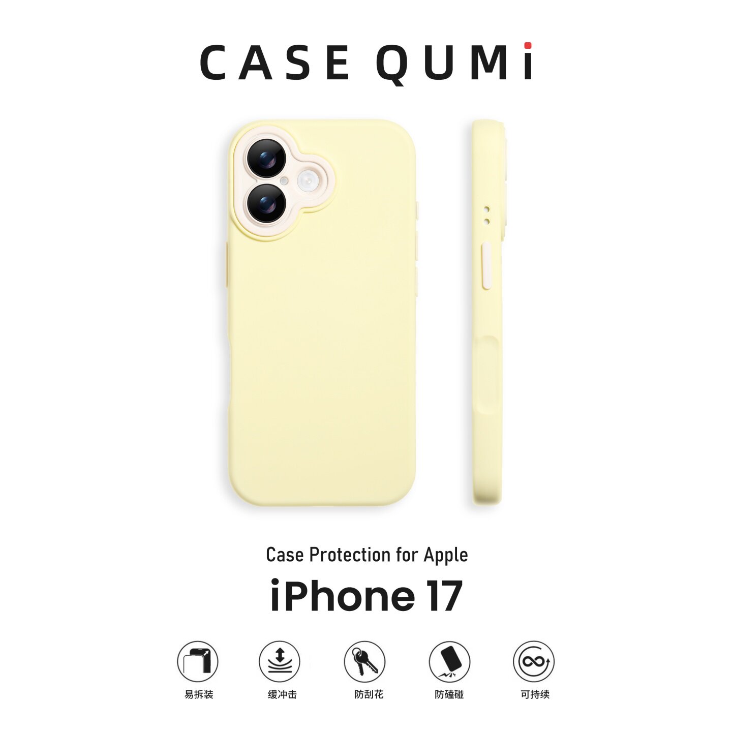 屈迷QUMI古董白镜头框撞色自带镜膜适用苹果17手机壳新款iphone17promax套Air全包16防摔15硅胶14Plus外壳13