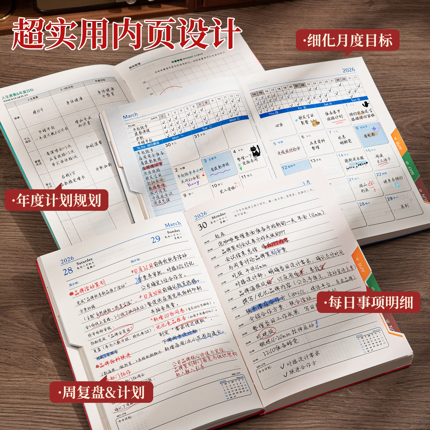 大容量日程本国潮记事本高效打卡计划本一本用整年2026年新款创意国风加厚笔记本多功能检索超厚400页手账本