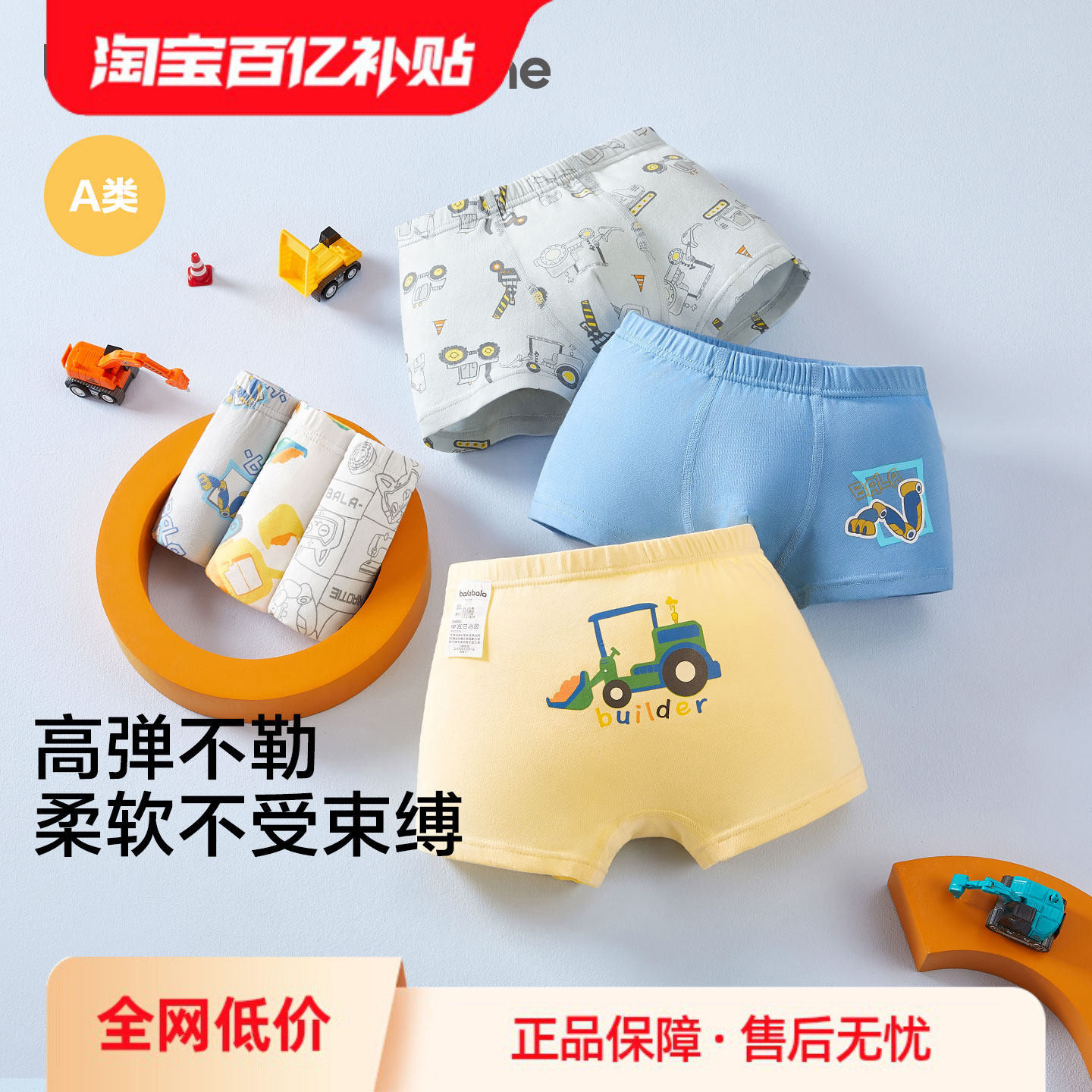 【balaOne】巴拉巴拉儿童内裤棉男童不夹pp抗菌裆四角短裤三条装