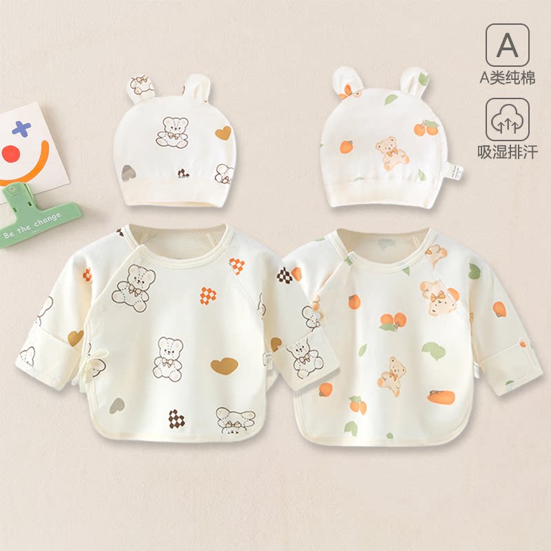 男女宝宝半背衣初生婴儿衣服a类纯棉52码满月衣服新生儿胎帽+半背