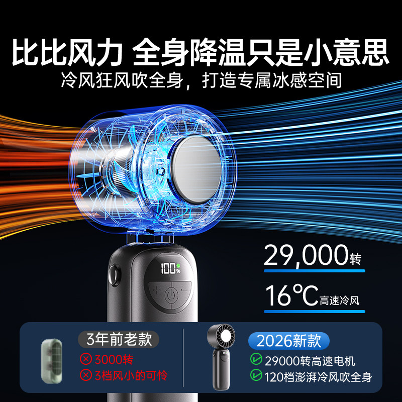 制冷小空调]风扇手持小型小迷你便携超长续航usb充电冰敷风扇折叠挂脖静音学生桌面宿舍户外降温神器2026新款