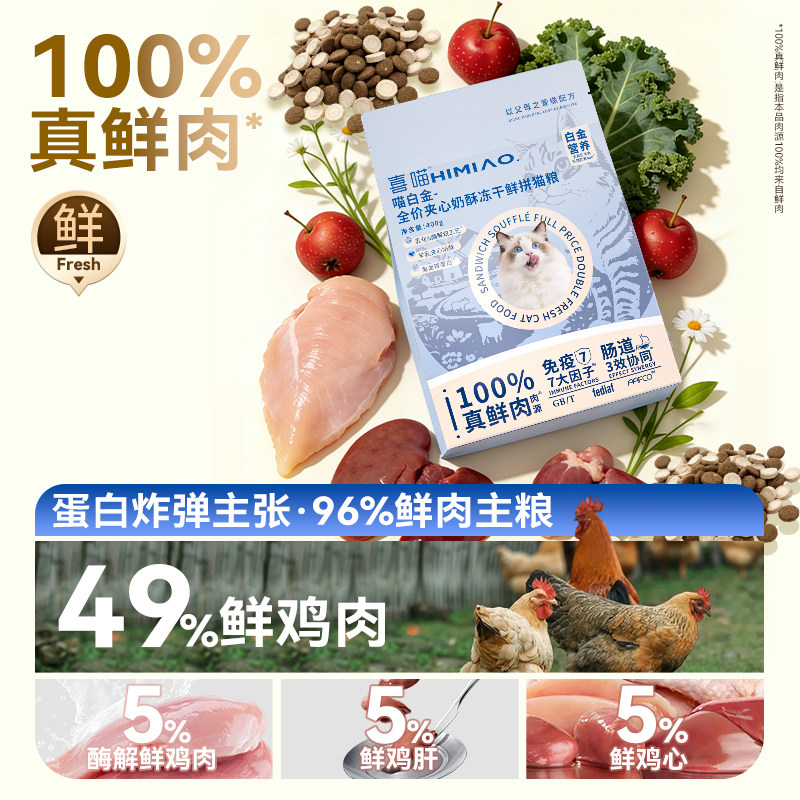 喜喵喵白金鲜拼粮冻干猫粮鲜肉粮幼猫营养成猫老年全价猫粮鸡肉味
