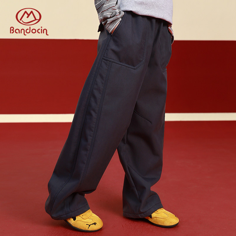 罗蒙儿童卡其色校园服裤子男童松紧西裤小学生加绒女童藏青运动裤