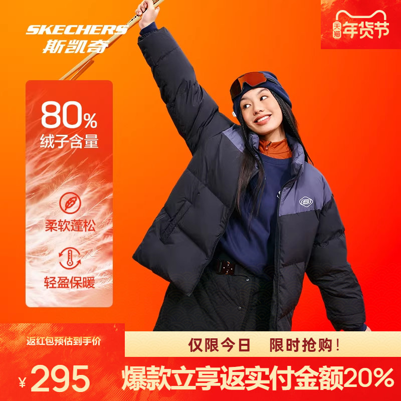 斯凯奇羽绒服男女同款情侣冬季拼色立领保暖短款防风锁热时尚百搭