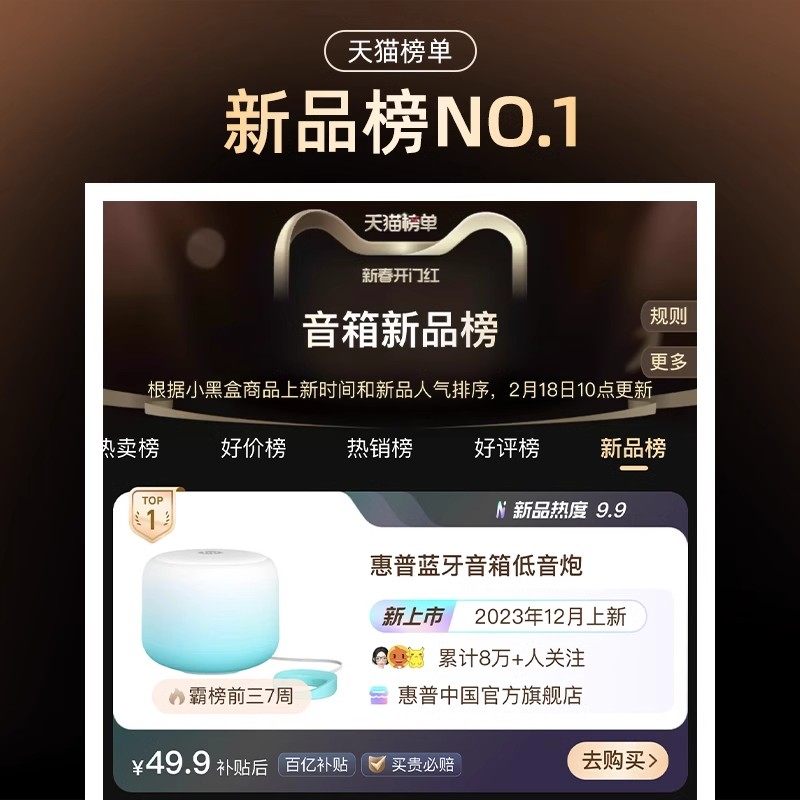 惠普音响蓝牙音箱高音质家用迷你无线音乐户外播放器便携式低音炮
