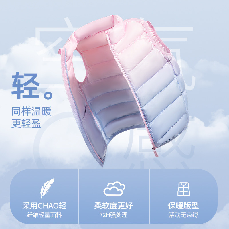 巴布豆女童羽绒马甲秋冬款2025新款儿童羽绒服轻薄保暖上衣冬装