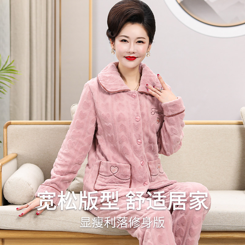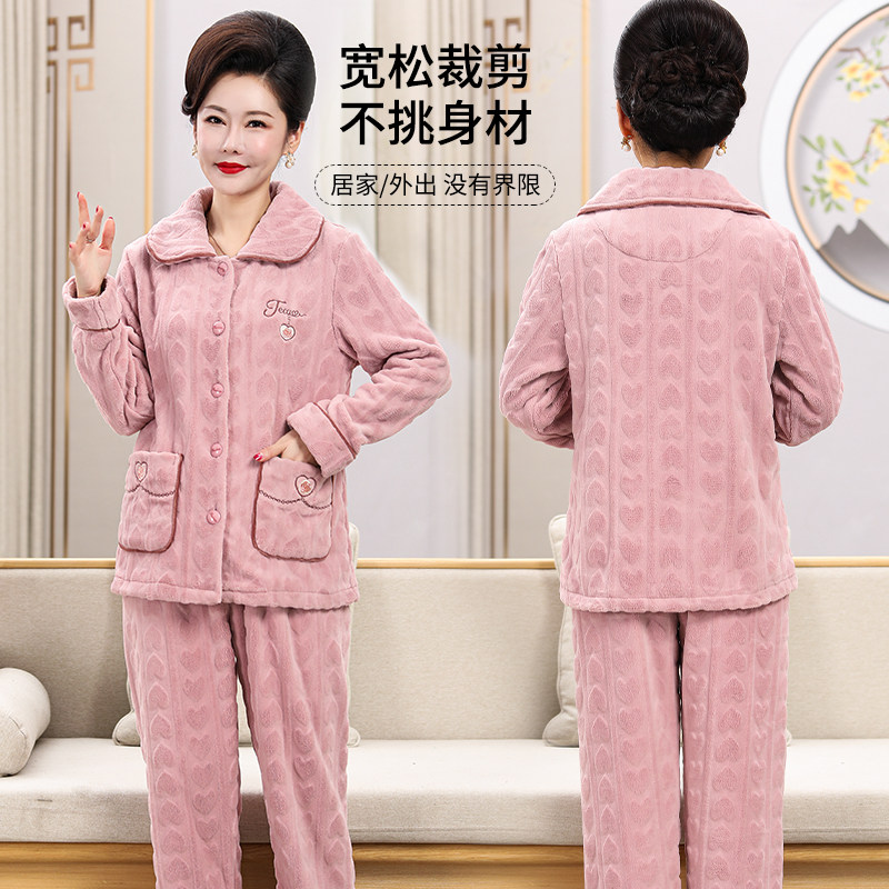 珊瑚绒睡衣女妈妈秋冬季2025新款中老年加肥加大法兰绒家居服套装