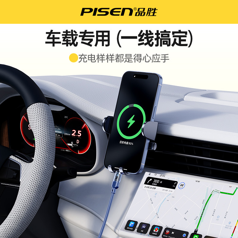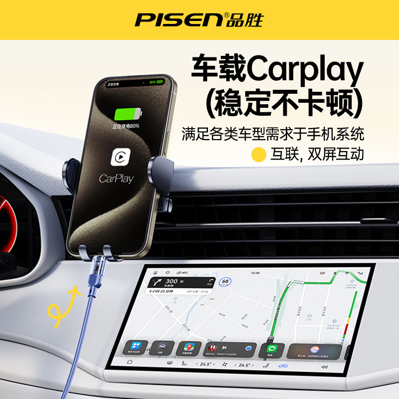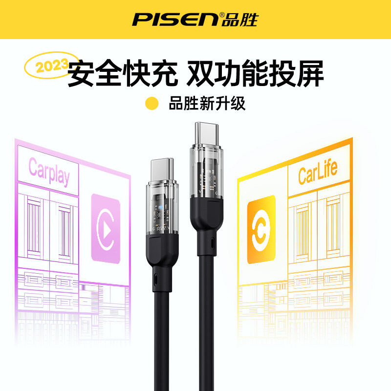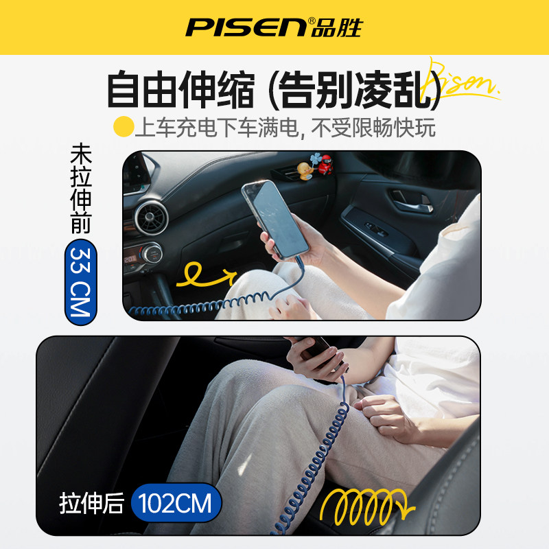 品胜车载充电线carplay数据线60W快充typec弹簧伸缩线适用大众宝马奥迪奔驰苹果iPhone15Pro车机互联usb短线