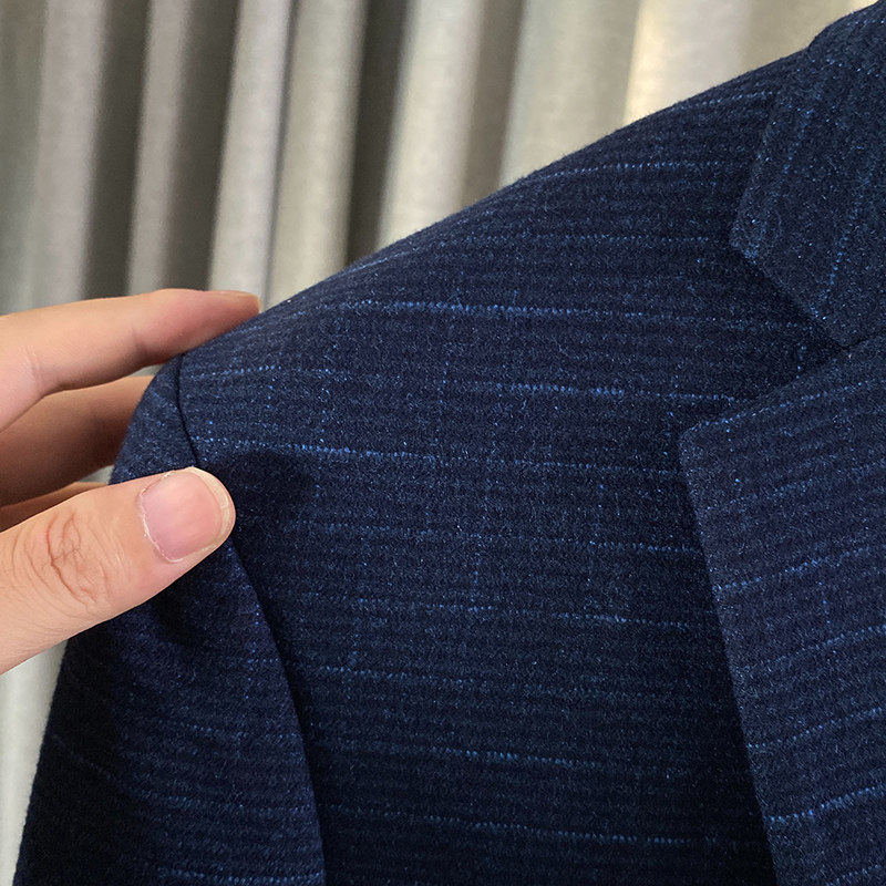 上男2023秋款简约时尚舒适面料挺括绅士格纹商务休闲便服潮流西服