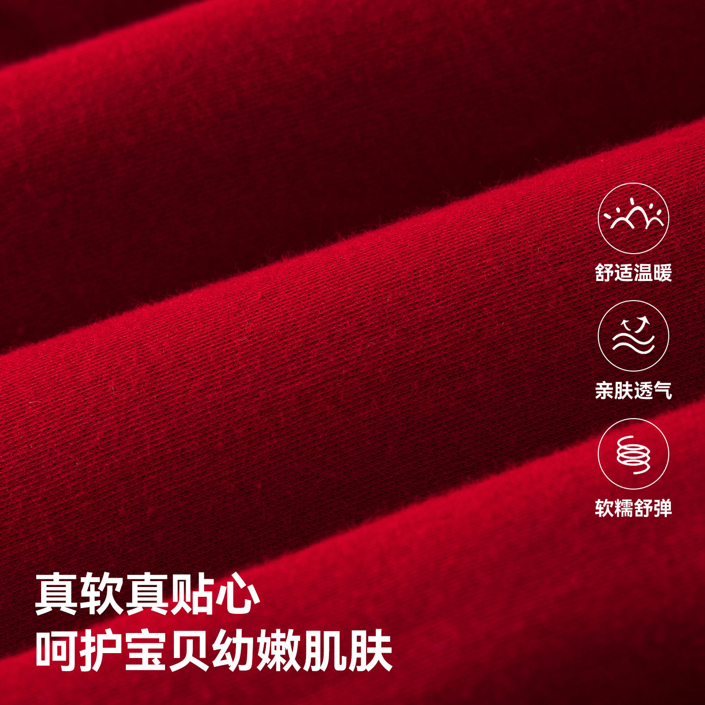 贝肽斯婴儿夹棉连体衣冬装加厚外出服红色百天满月宝宝拜年衣服S