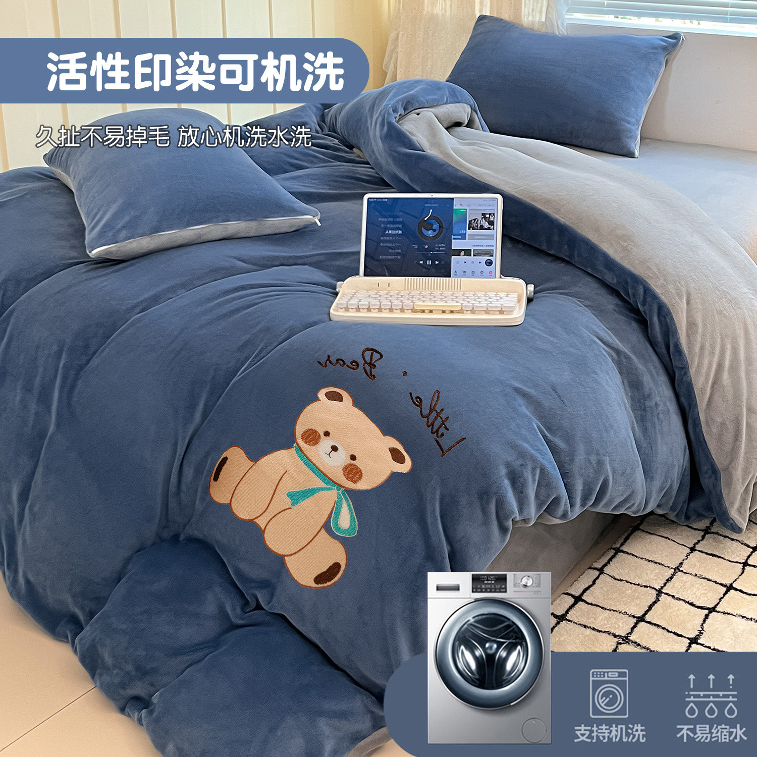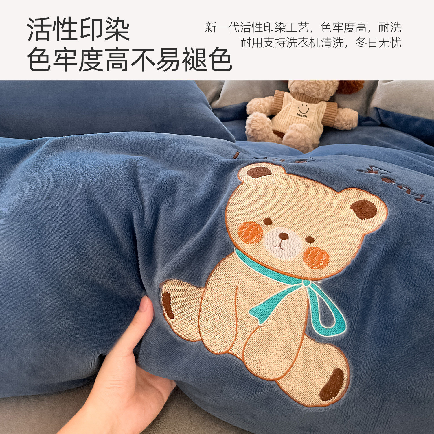 牛奶绒床上四件套秋冬加厚保暖套件水晶绒被罩出租屋双人床单新款