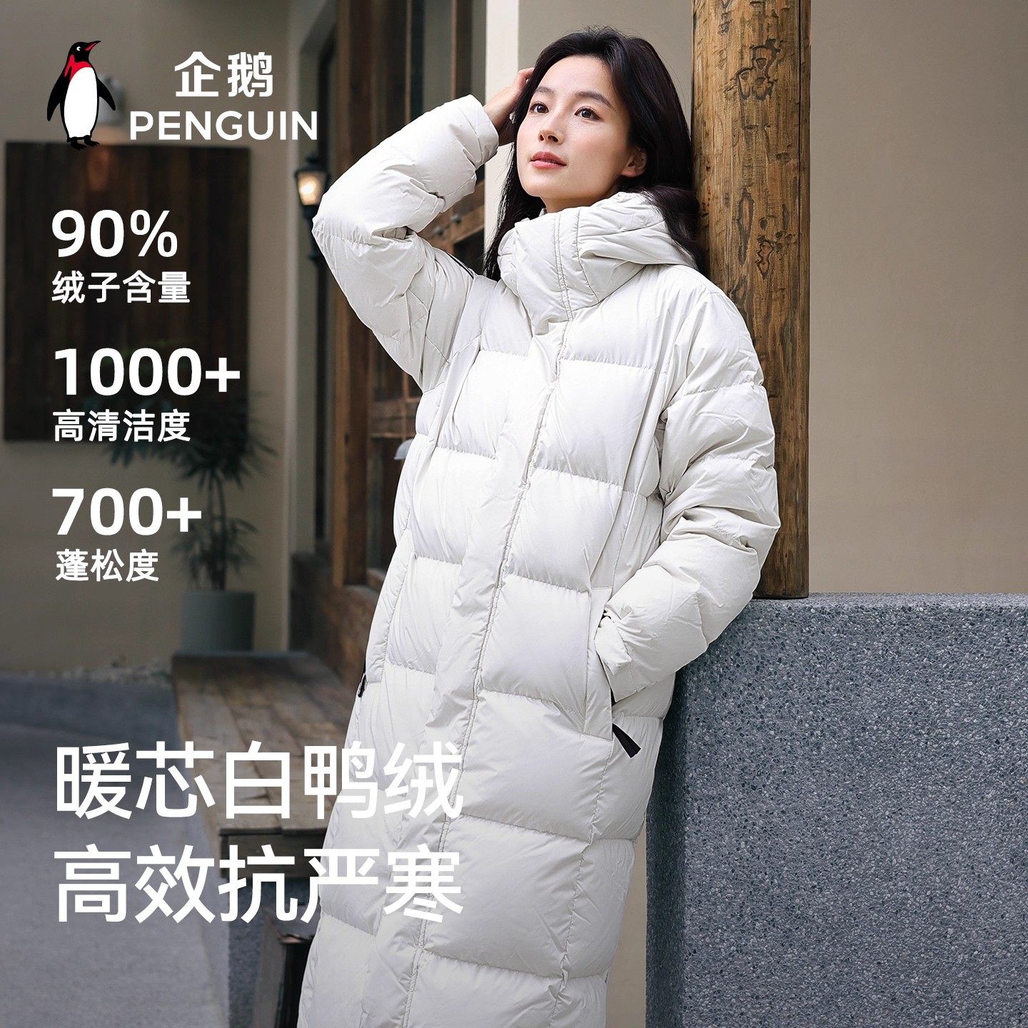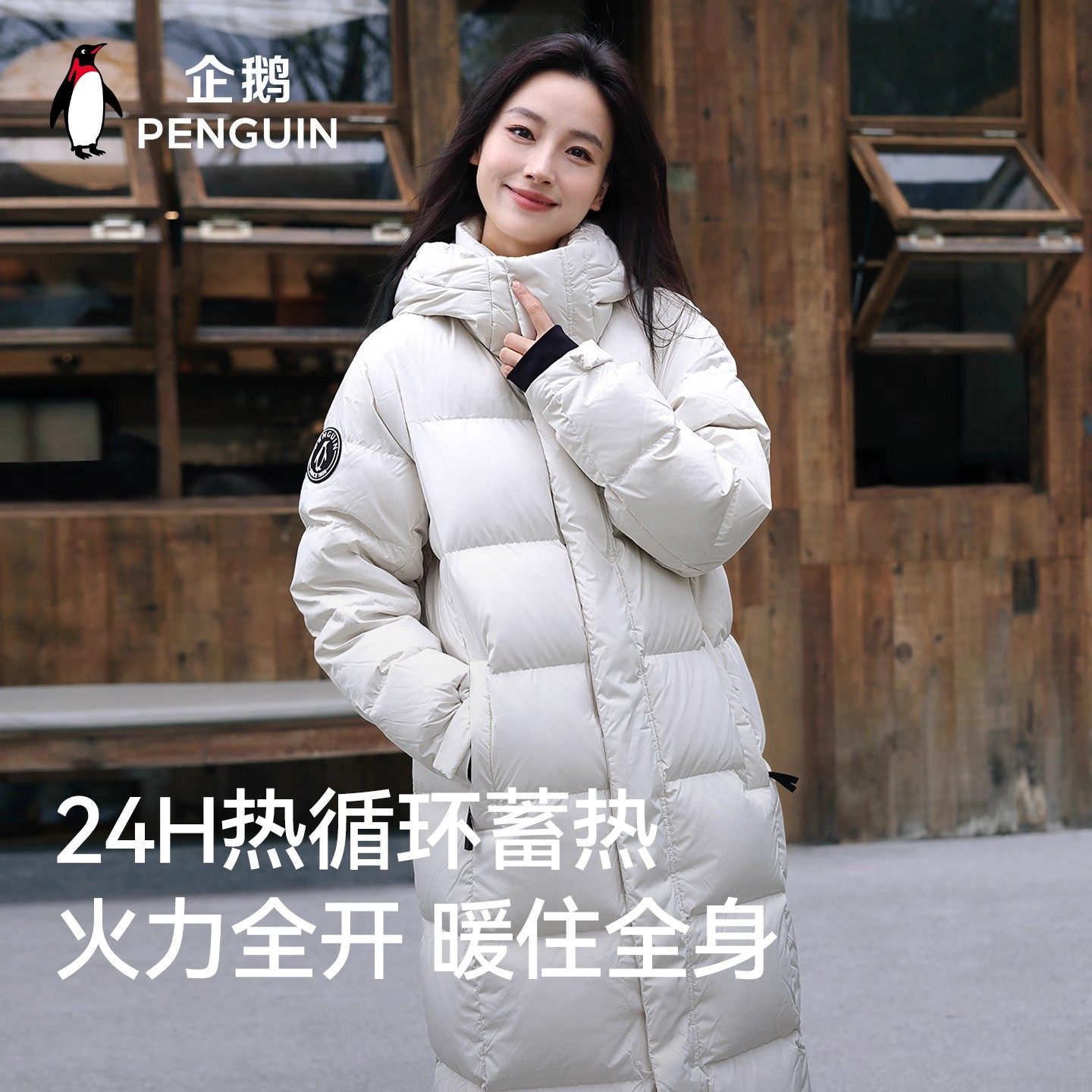 企鹅火山岩羽绒服女中长款25冬季过膝保暖面包服防风连帽外套男