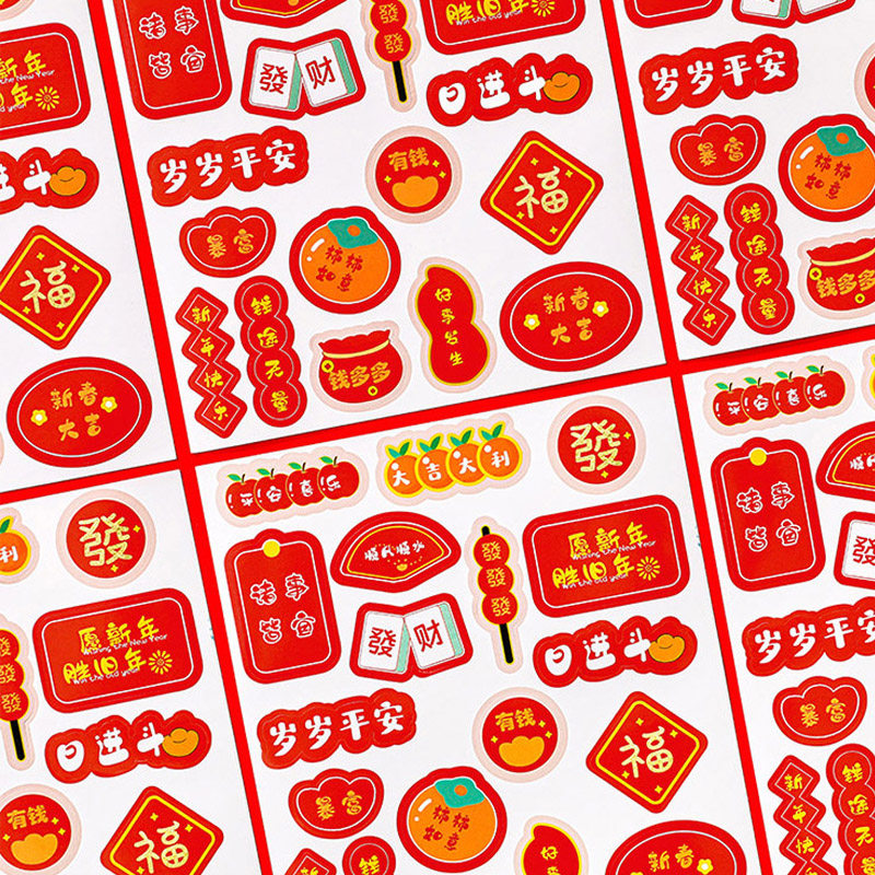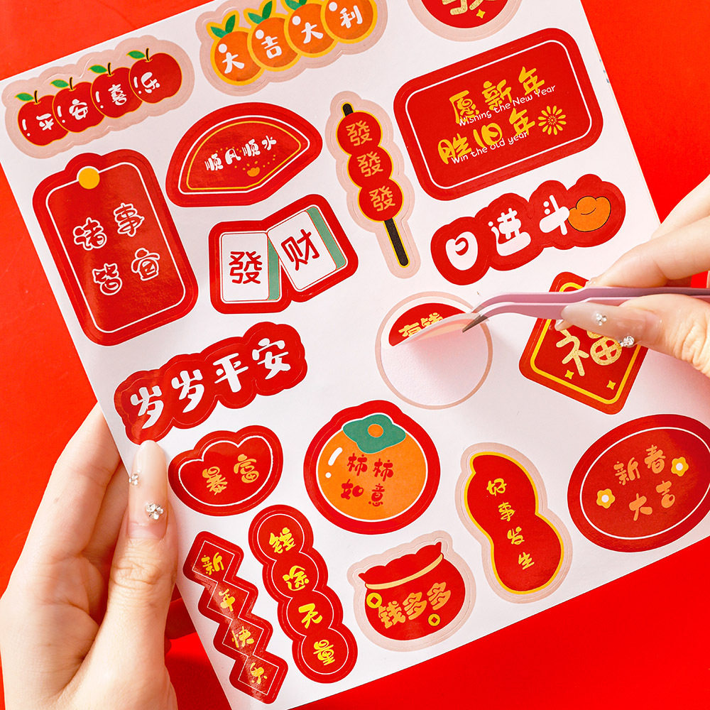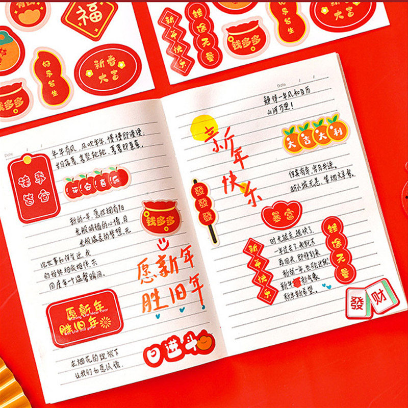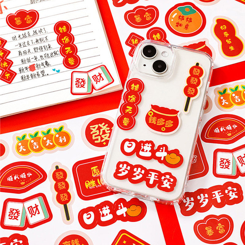 新春大吉贴纸新年喜庆氛围贴画高颜值手帐贴纸女孩儿童奖励卡通diy礼盒封口贴苹果水杯手机贴纸文字装饰年货