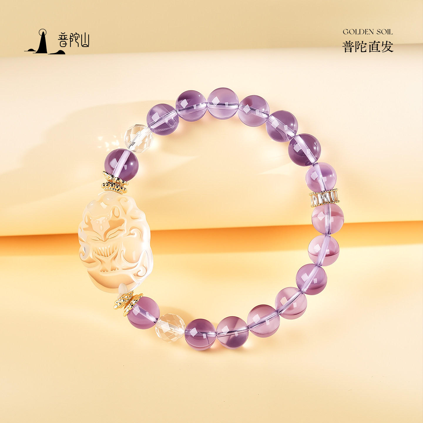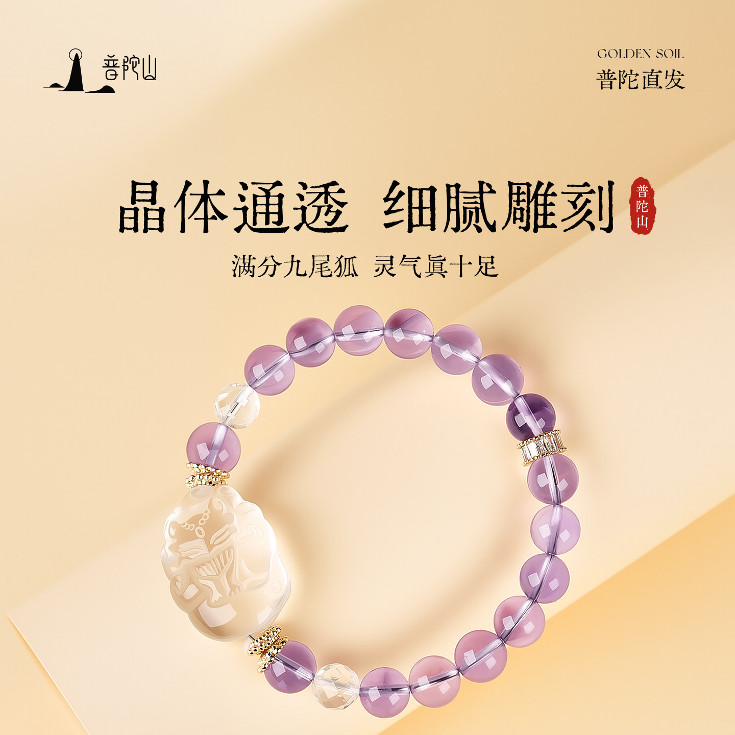 普陀山天然紫水晶貔貅手链女款招财转运九尾狐水晶手串小众设计