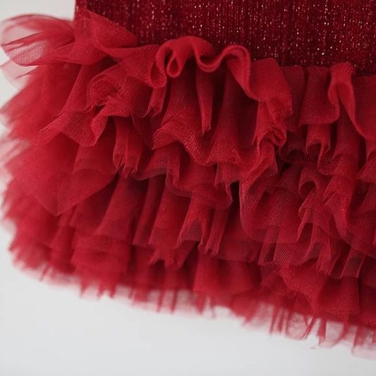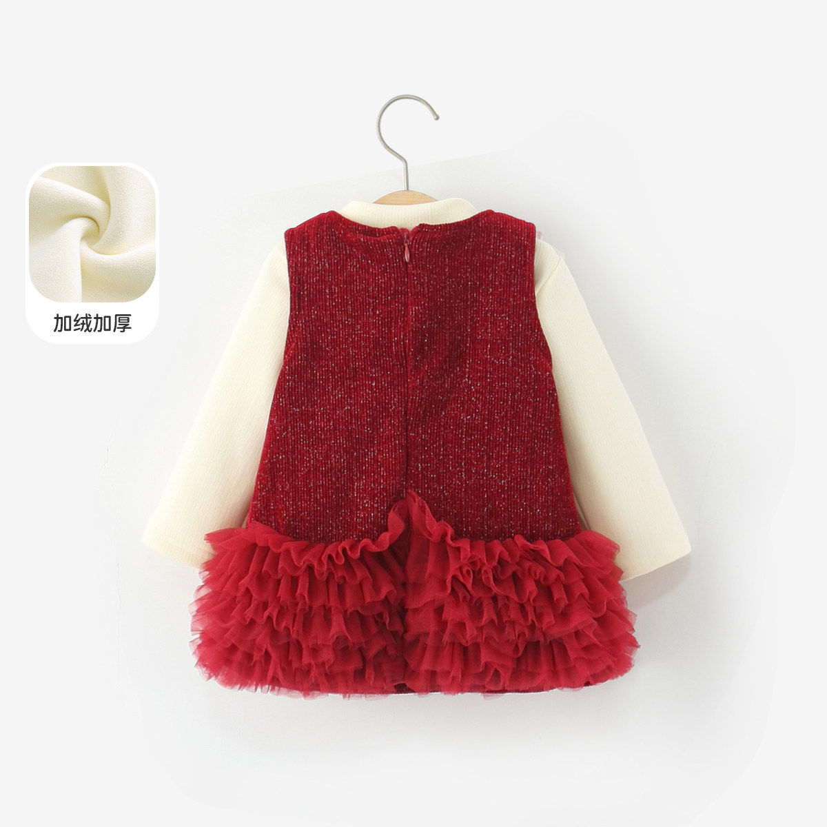 [抗菌远红外]女童连衣裙宝宝高领加绒蓬蓬网纱裙子儿童红色公主裙