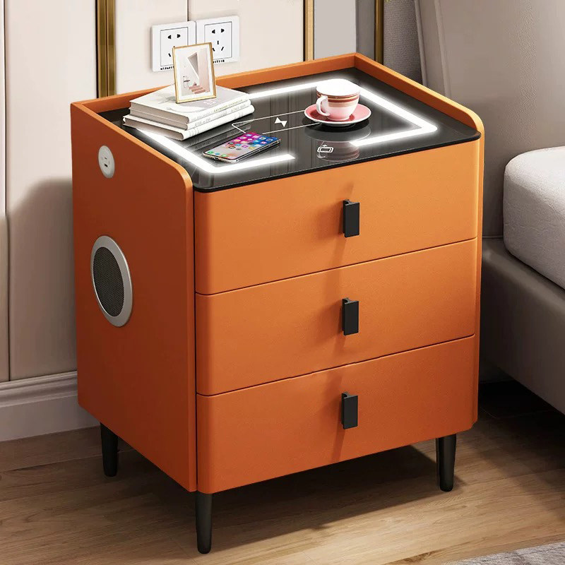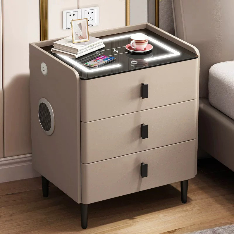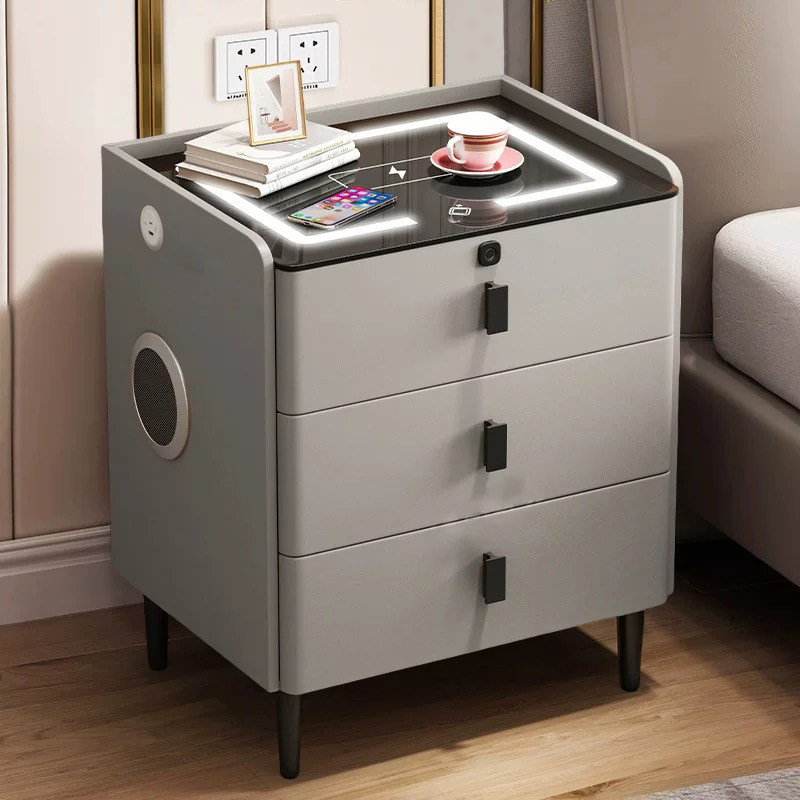 3层抽屉智能床头柜卧室家用指纹锁实木无线充电蓝牙音响带灯边柜