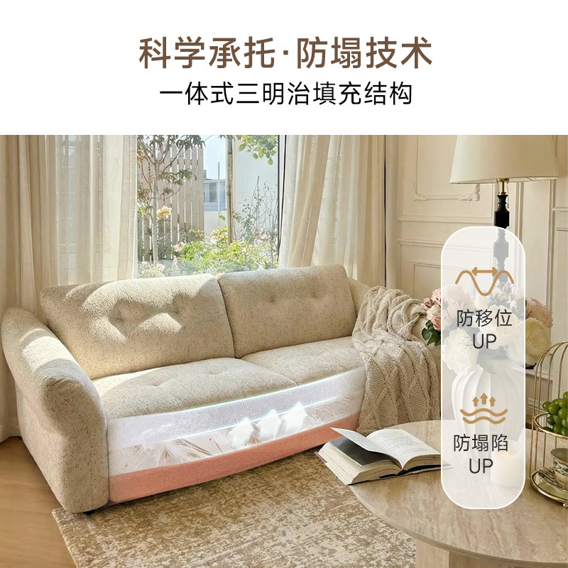 安隅集物蒙朵沙发浮光梦高定色全可拆洗法式奶油风布艺横厅高靠头