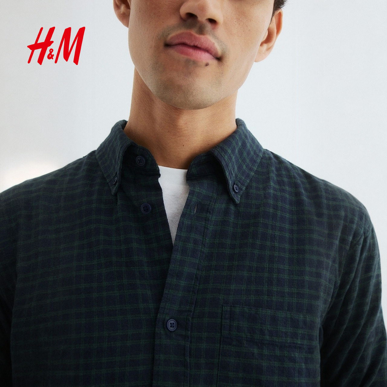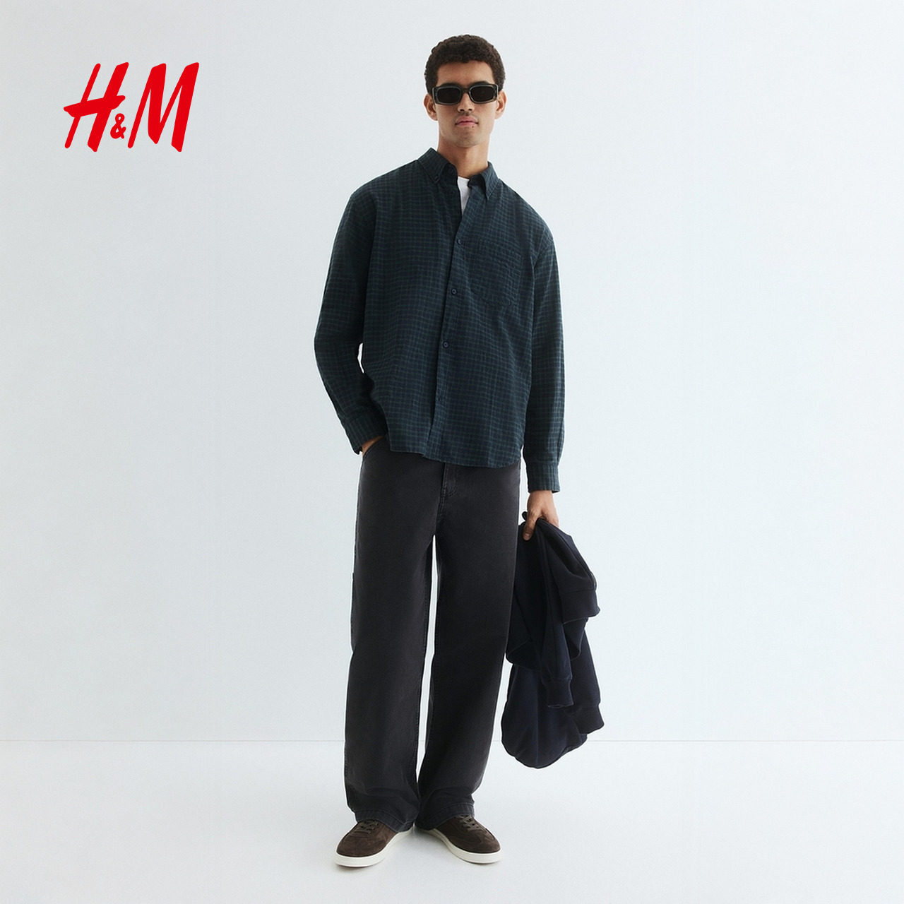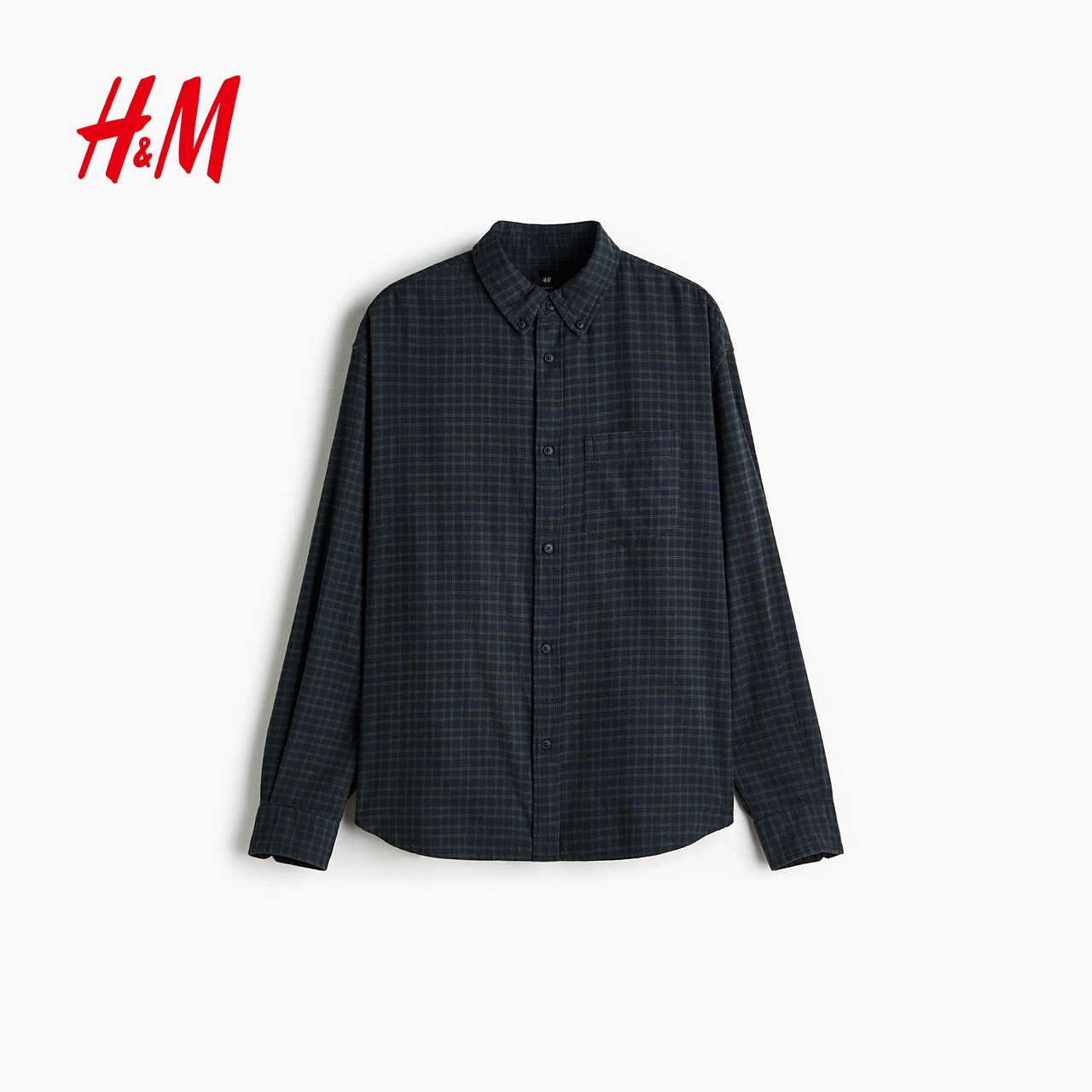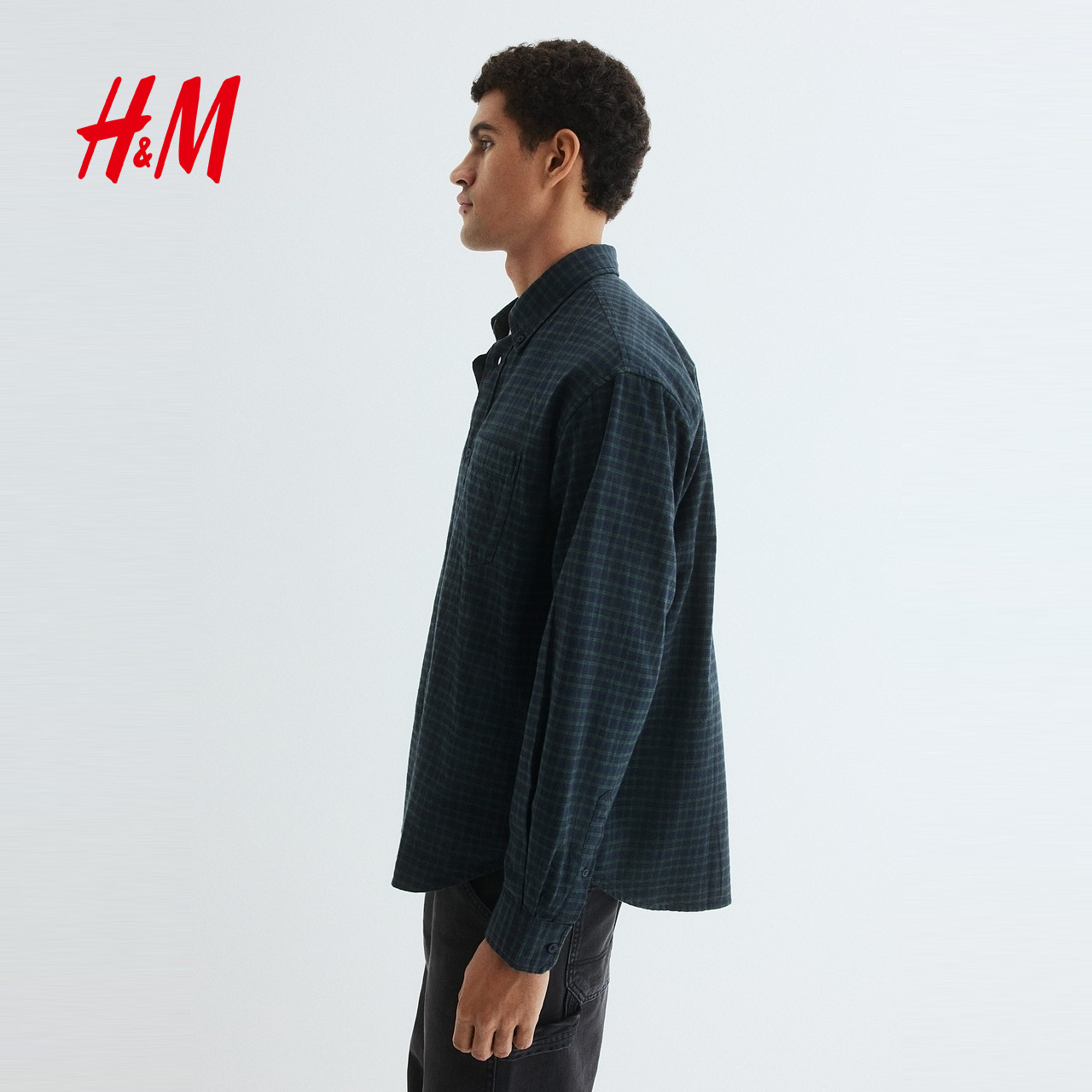 HM男装衬衫春季宽松版通勤格纹长袖内搭衬衣1296173