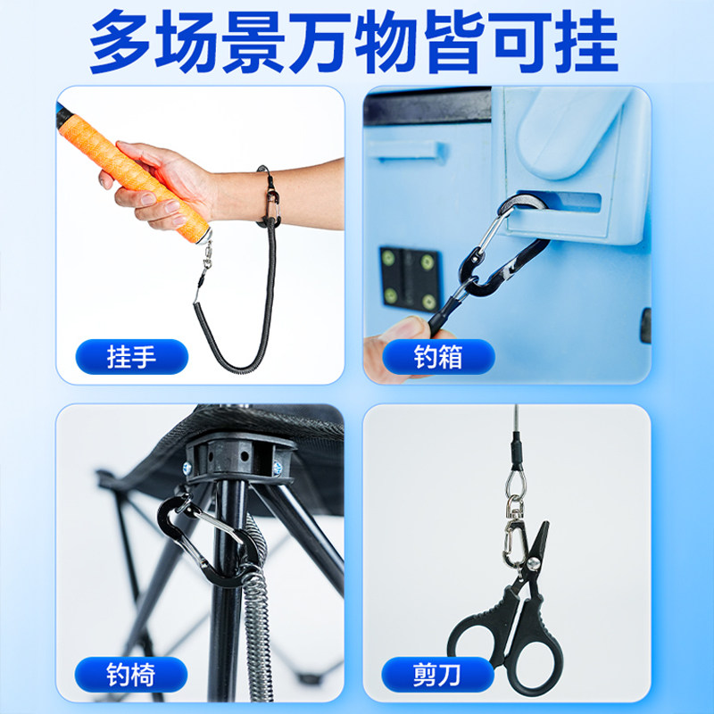 钢丝失手绳高弹自动伸缩路亚筏钓控鱼器登山扣挂扣防丢钓鱼竿垂钓