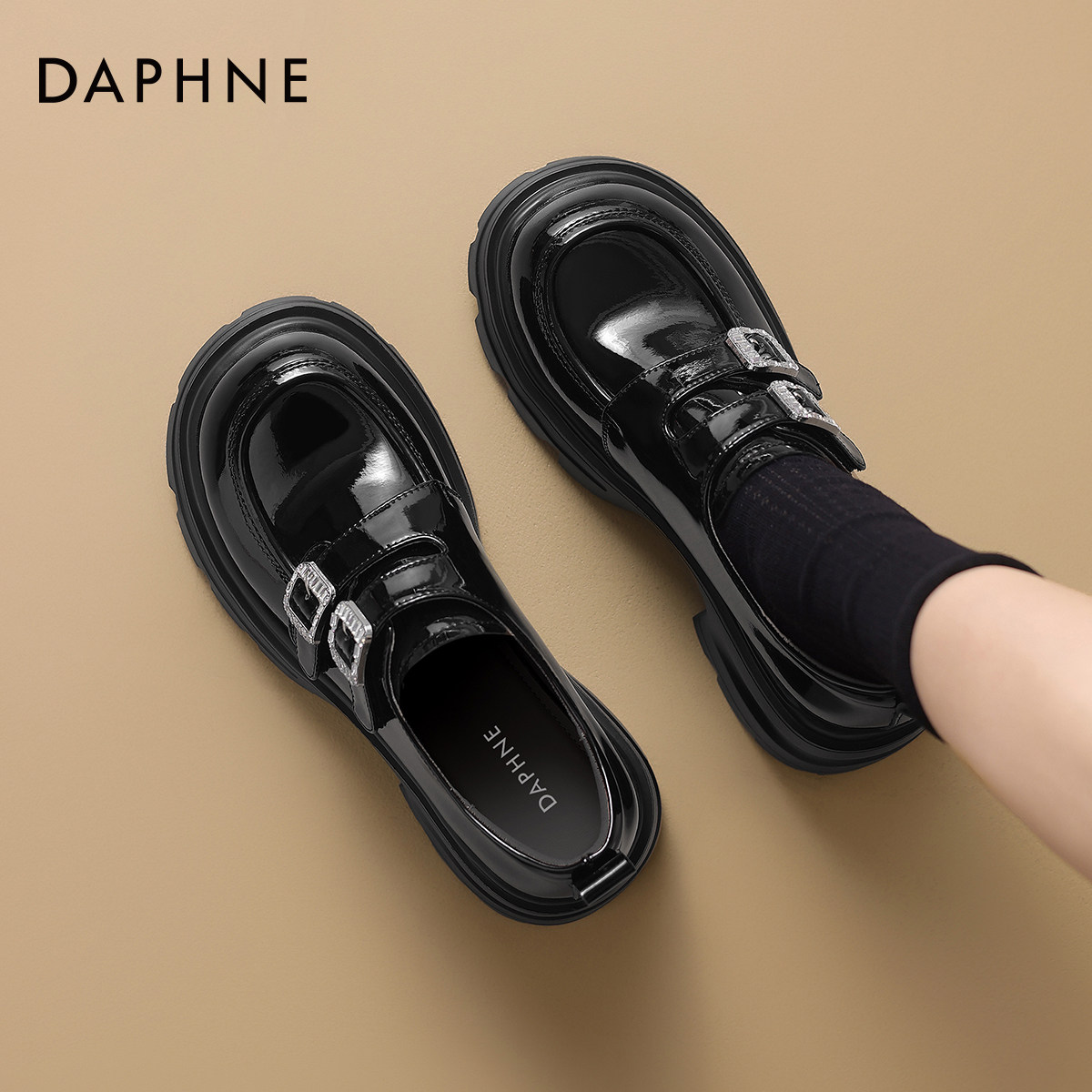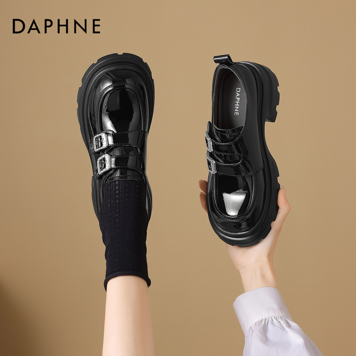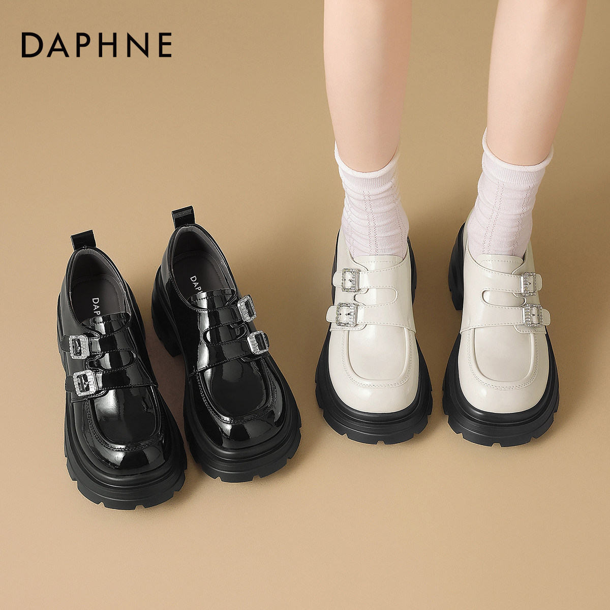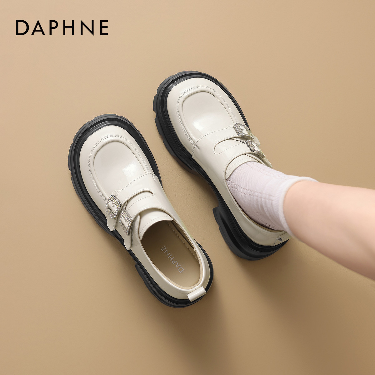 达芙妮厚底乐福鞋女2026新款春季白色英伦风皮鞋一脚蹬松糕底单鞋