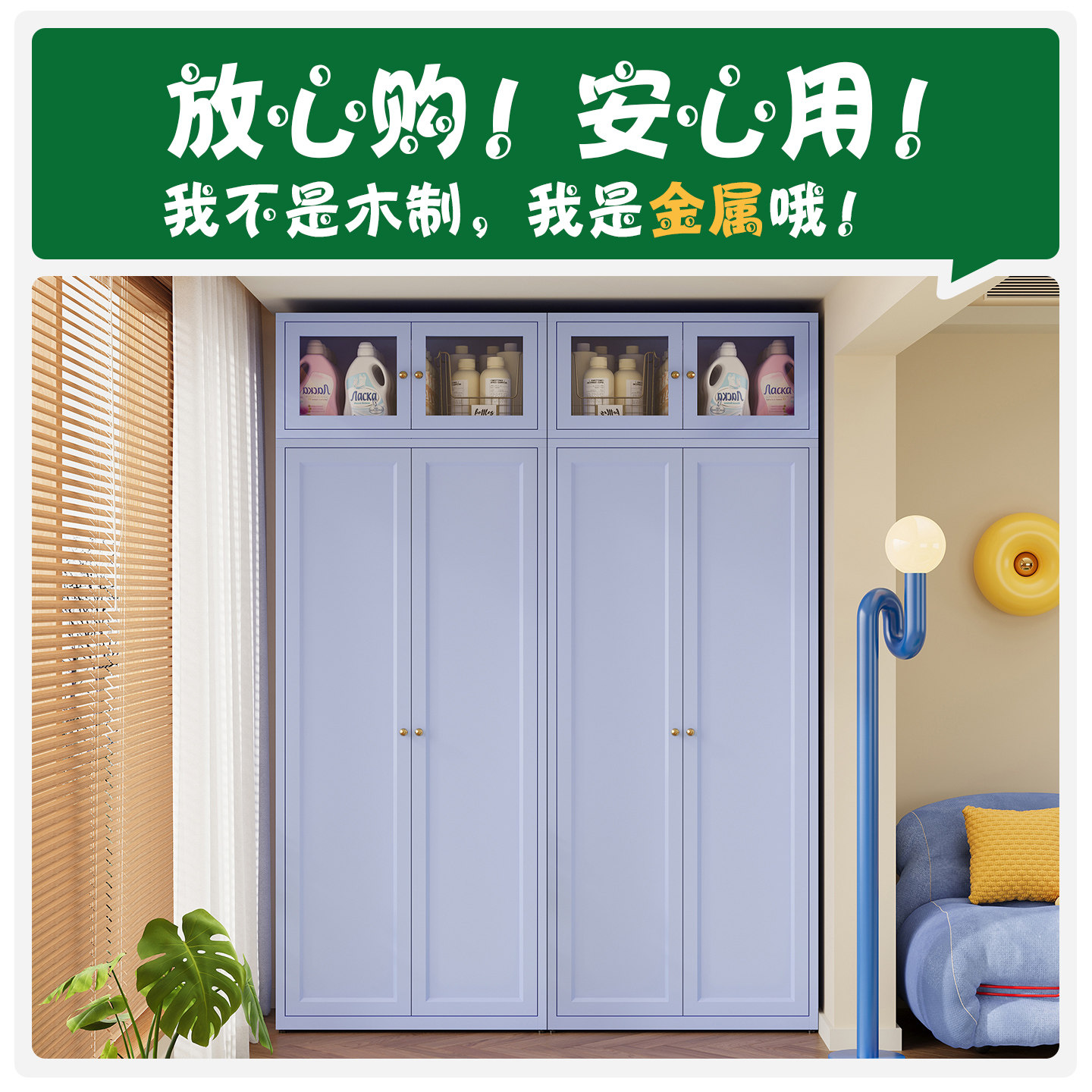 阳台靠墙收纳柜客厅改造防尘防潮加厚大容量铁皮柜组合杂物储物柜