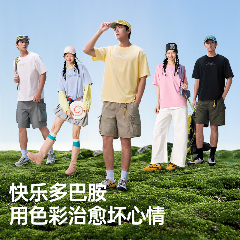 骆驼男装凉感抗菌短袖t恤女夏季2026新款情侣款宽松印花半袖体恤