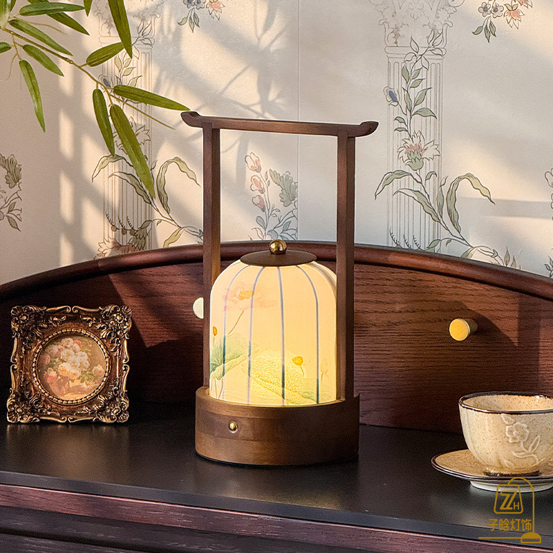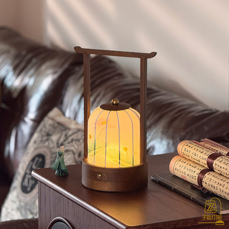 宋代美学手提台灯新中式国风布艺充电触摸卧室夜灯茶室书法氛围灯