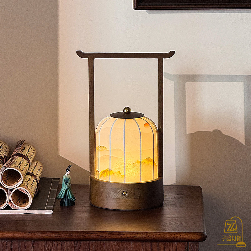 宋式美学台灯中式古风复古手绘客厅书法茶台氛围灯装饰卧室床头灯