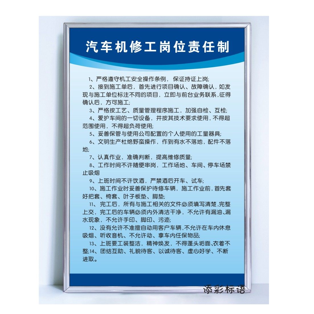 汽车保养工时价目表修理厂4S店汽修安全生产操作规程制度标牌