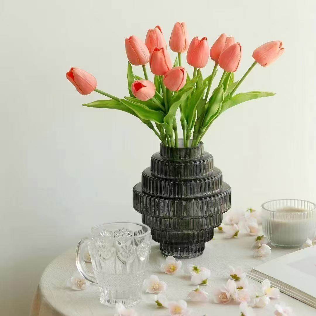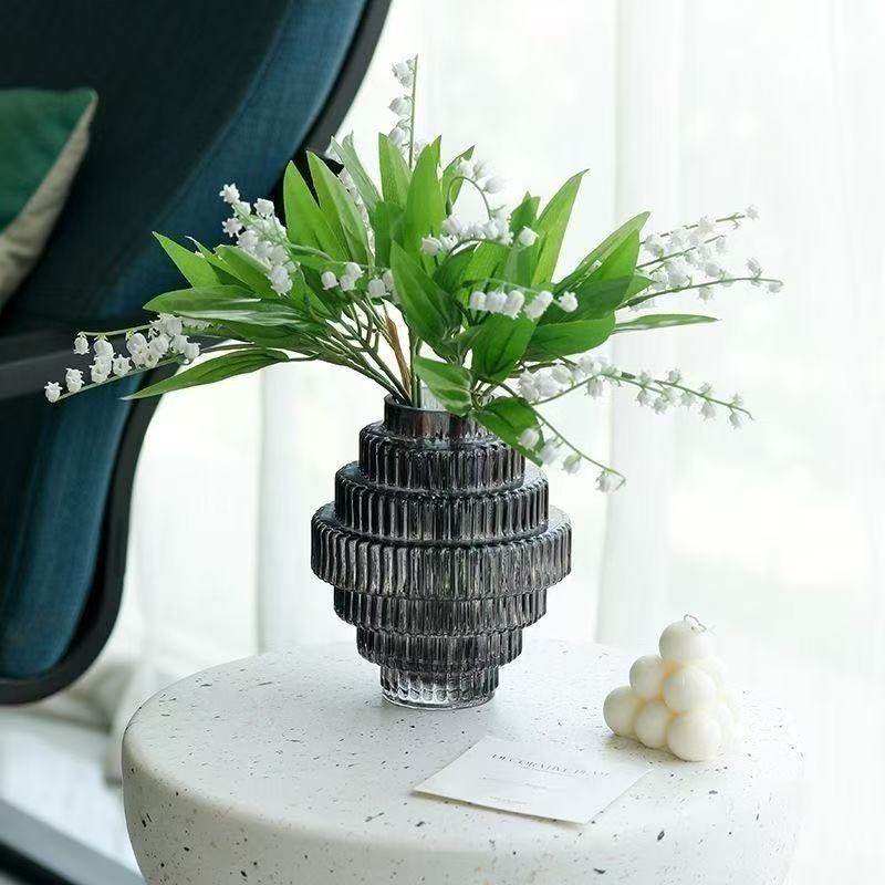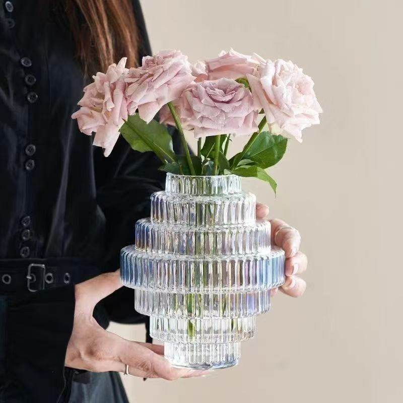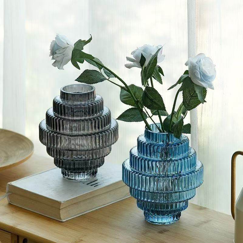 日式江户水晶花瓶风摆件不规则褶皱条纹水培莫兰迪竖塔居家绿植