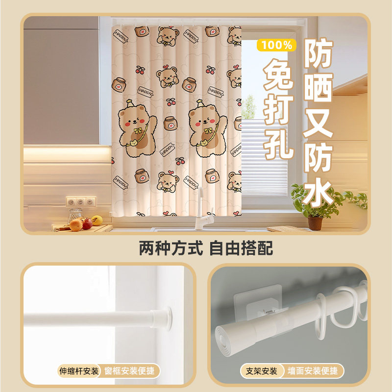 2025新款免打孔安装窗帘遮光遮阳帘遮光帘卫生间遮挡帘浴室窗户