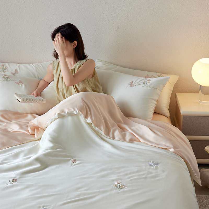 夏季凉感a类60s兰精天丝四件套小清新刺绣丝滑裸睡母婴级套件床品