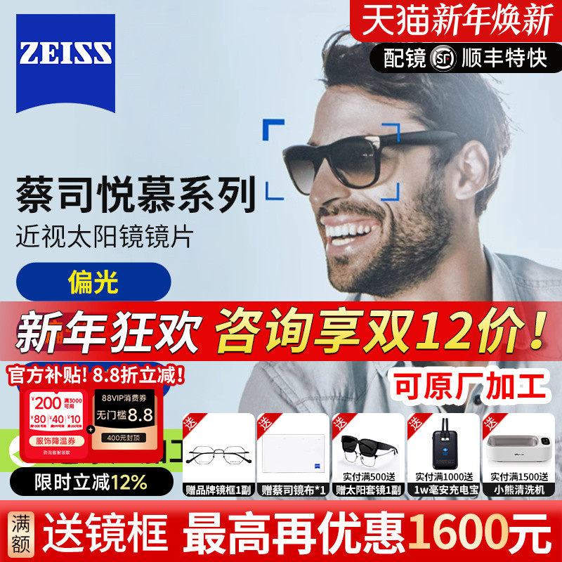 蔡司悦慕偏光太阳镜片钻立方铂金膜开车钓鱼遮阳近视镜片墨镜2片
