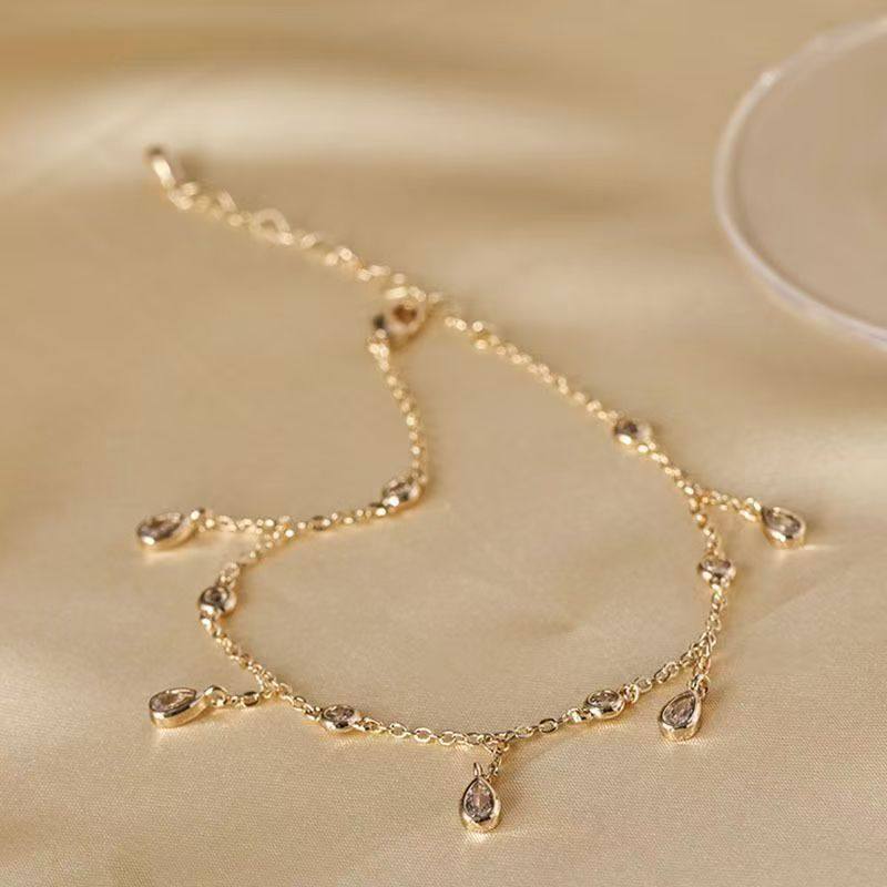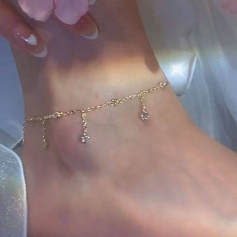 简约闪钻个性脚链女ins小众设计高级感韩国流苏气质网红小众脚链